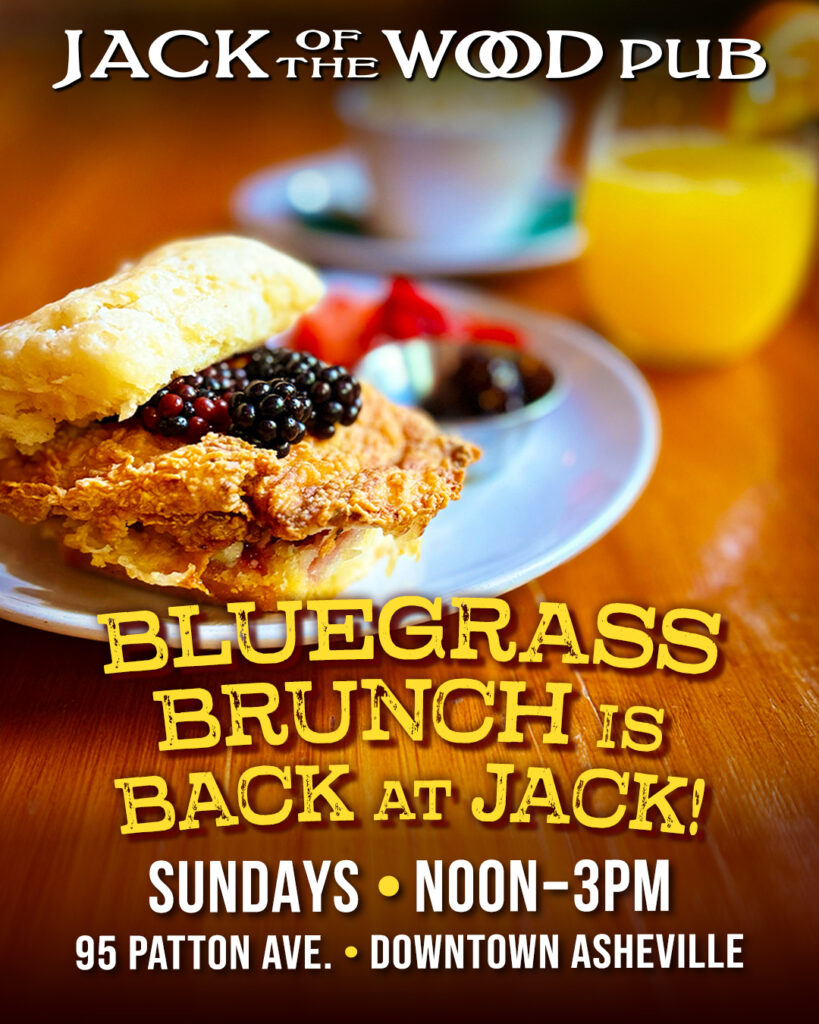 Jack’s Bluegrass Brunch kicks off every Sunday at noon with toe-tappin’ tunes courtesy of The Bluegrass Brunch Boys — featuring some of Asheville’s finest musicians, including ANDREW WAKEFIELD, JAMES SCHLENDER, ADAM BACHMAN, & ZACHARY DYKE — going until 2pm!